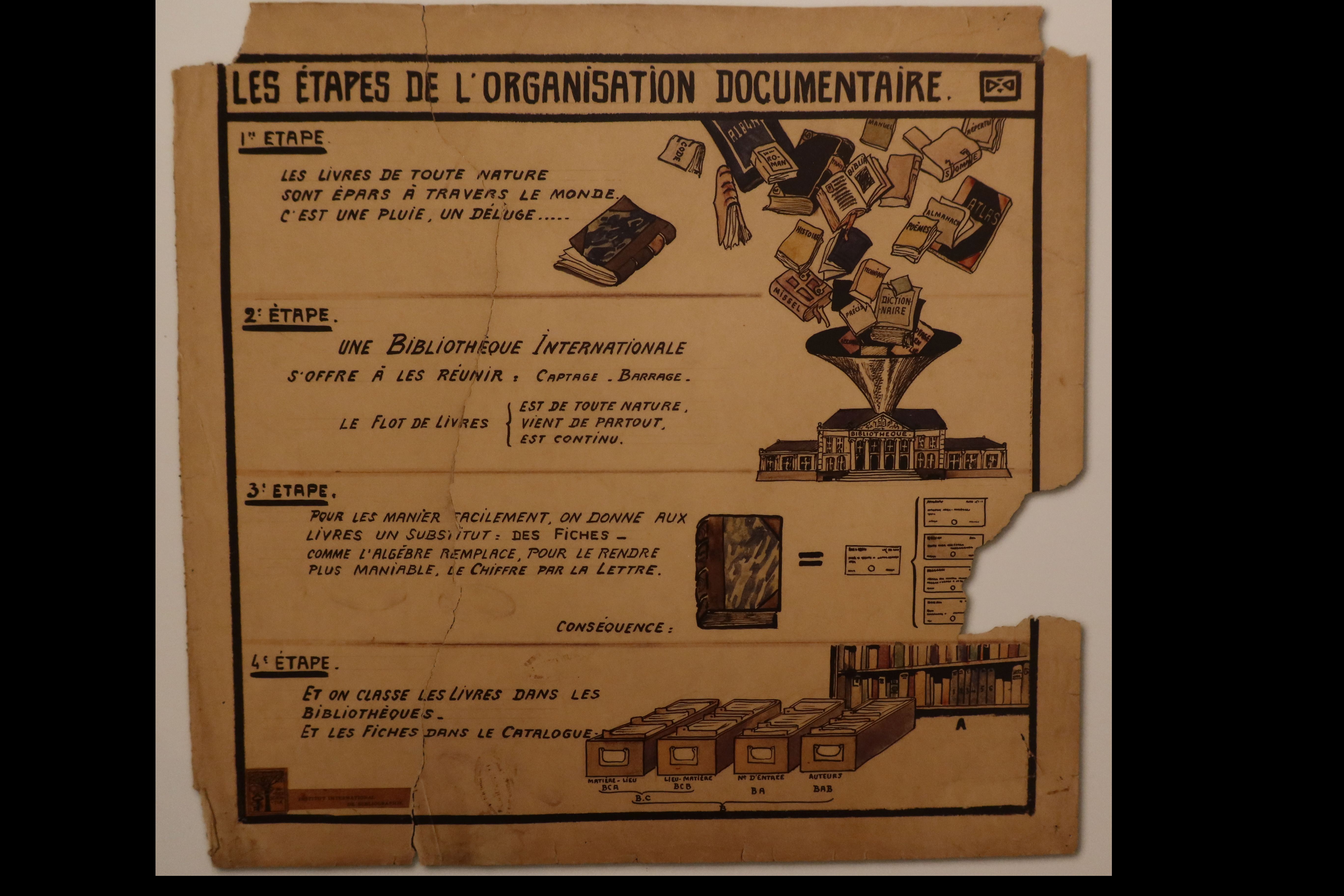 Schema: Le Livre en connection avec la bibliothèque, le répertoire bibliographique et l'encyclopédie. Les trois bases du réseau mondial de la documentation universelle. 1920