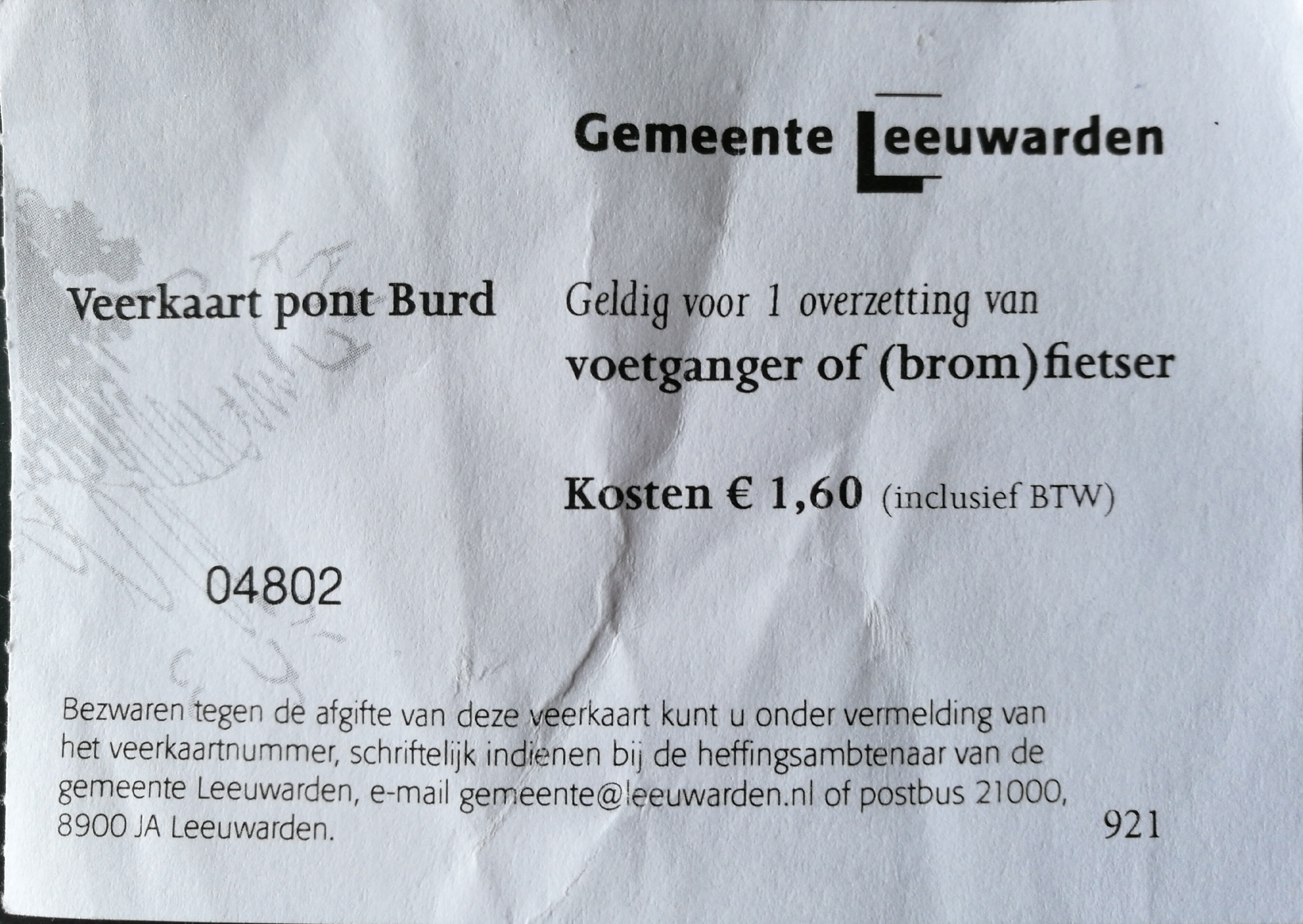 Een voor bezwaar vatbare beschikking met indentificatienummer maar zonder datering, zoals datum document en datum afgifte. Dit type veerkaart wordt afgegeven op de Veerpont de Burd.
