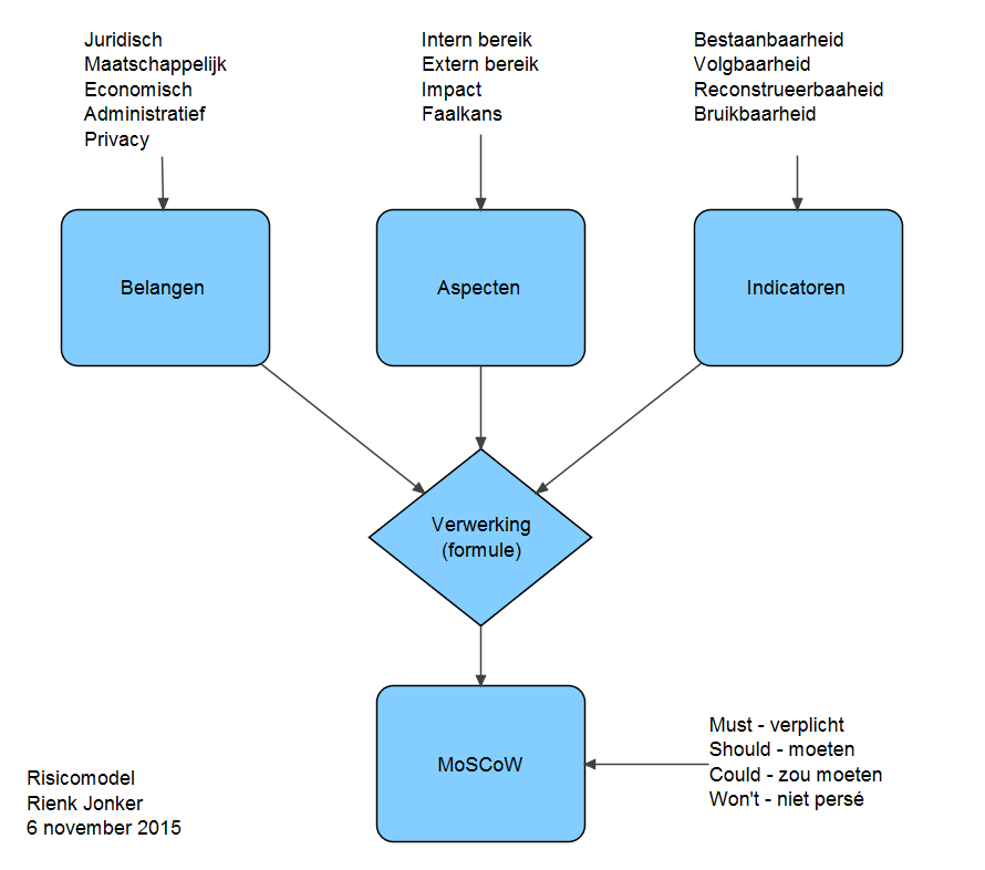 Een berekening op basis van het geheel van belangen, aspecten en indicatoren leidt tot een risiconiveau dat vertaald kan worden tot een variant van het MoSCow-model.