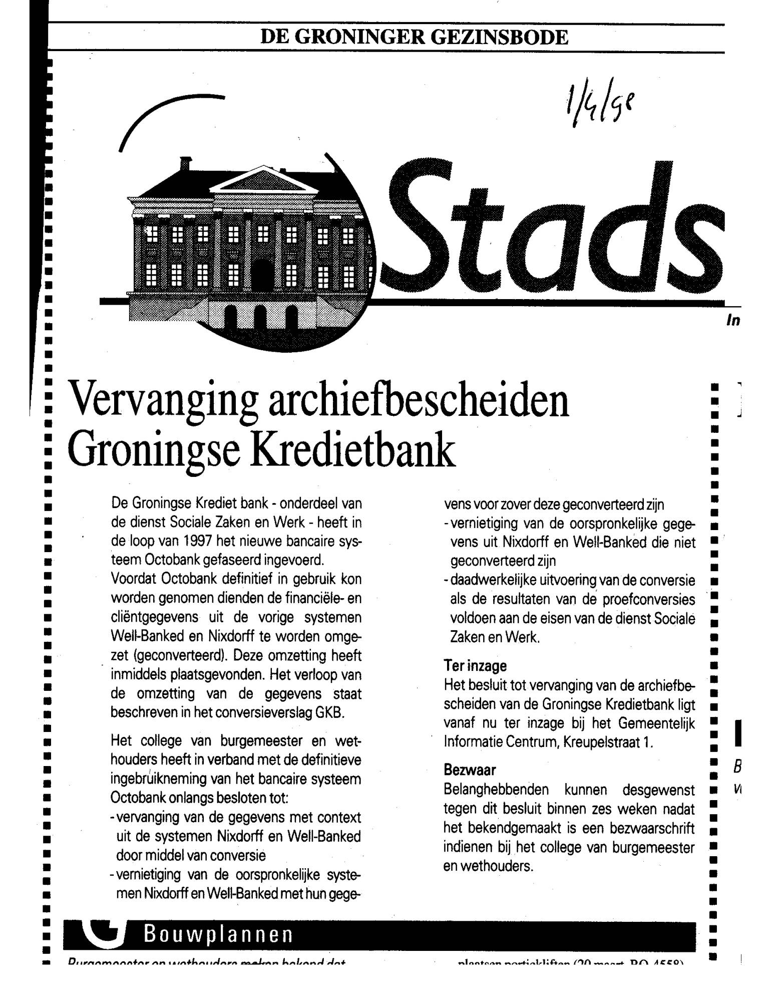 Advertentie uit de Groninger Gezinsbode van 1 april 1998. Deze heeft een bezwaarschrift tot gevolg gehad.