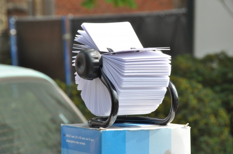 Vellen met voorbedrukte formulieren in de vorm van fiches voor het registreren van (ingekomen) documenten.